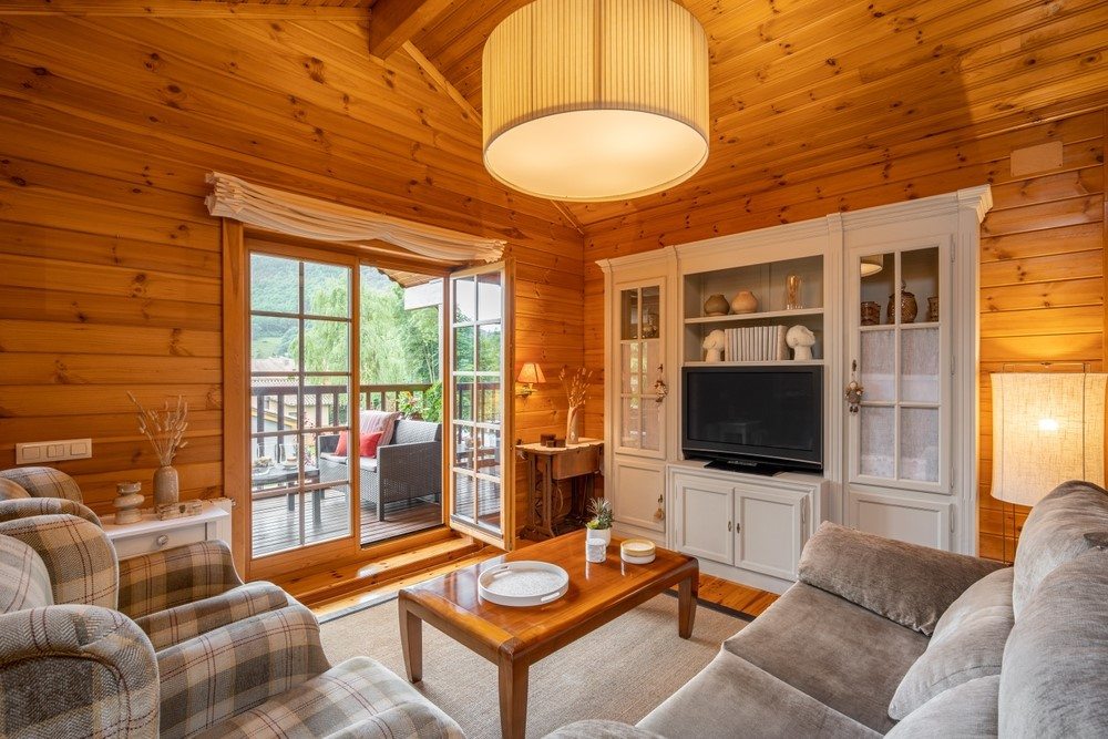 Чтобы сохранить природную текстуру деревянных стен, чаще всего их не покрывают панелями, краской, не клеят обои. Стены сами по себе выглядят эстетично и эффектно. Достаточно использовать специальный лакокрасочный состав, это ещё и дешевле: исключает шпаклёвку, штукатурку и другие отделочные работы.