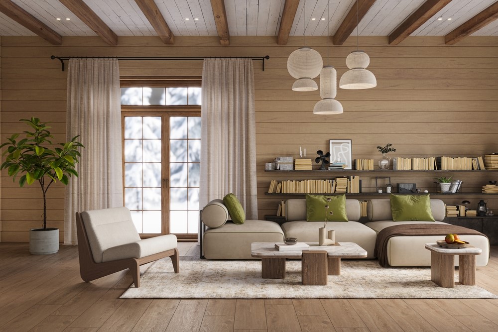 Интерьер современного дома из клееного бруса: примеры дизайна с фото