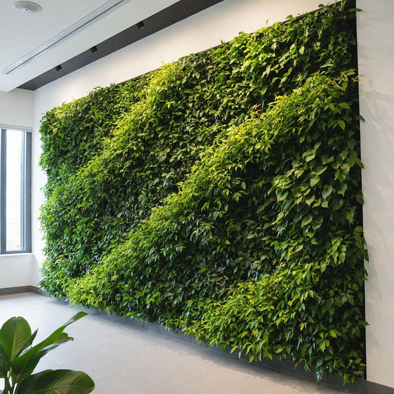 - Биофильный дизайн. Использование панорамных окон, фитостен и вертикального озеленения не только эстетически обогащает интерьер, но и позитивно влияет на качество воздуха и общее самочувствие.