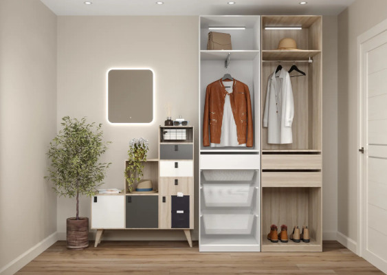 - Боковые вешелки с крючками выдвижные брючницы и другие встроенные аксессуары помогают поддерживать порядок в шкафу и использовать пространство максимально эффективно. Они обеспечивают удобный доступ к вещам и упрощают сортировку по категориям.