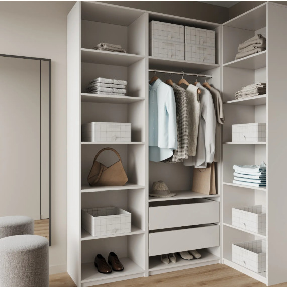 Шкаф должен оставаться функциональным не только в момент установки. Постепенное накопление вещей — естественный процесс, и это стоит учесть при расчете объема хранения.
