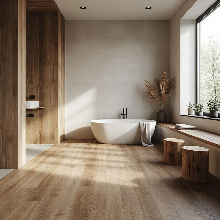 Плитка под дерево в ванной: Тепло натуральных материалов в современном исполнении