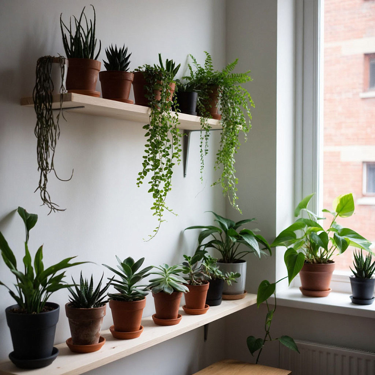- Комбинирование растений: Сочетание растений различных видов и размеров позволяет создавать многоуровневые и динамичные композиции. Сочетание крупных растений с небольшими суккулентами или папоротниками обогащает интерьер.