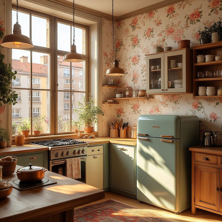 Таким образом, ретро-кухня представляет собой синтез эстетики прошлого и функциональности настоящего, предлагая романтическую атмосферу без компромиссов в плане комфорта и технологий.