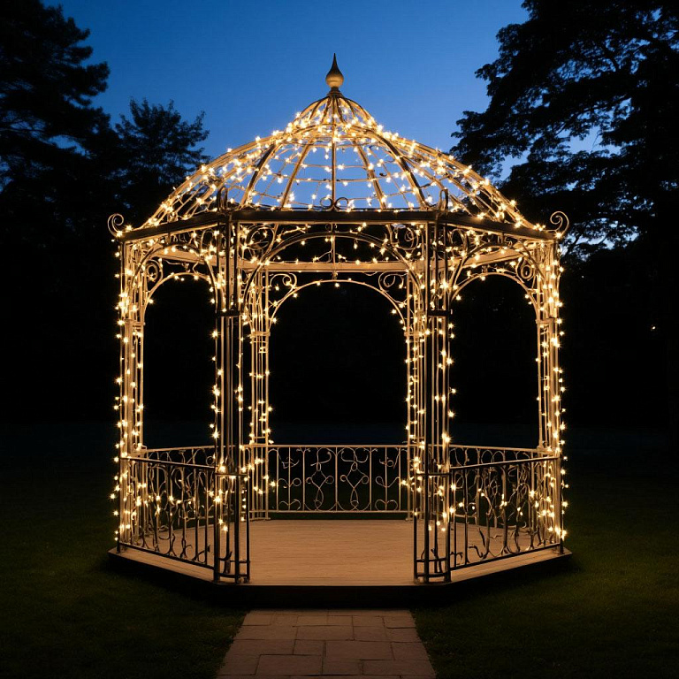 Создайте уютное пространство для вечерних встреч с помощью освещения беседок. Подвесные светильники или гирлянды добавят романтики и уюта, а также позволят вам наслаждаться временем на свежем воздухе даже после захода солнца.