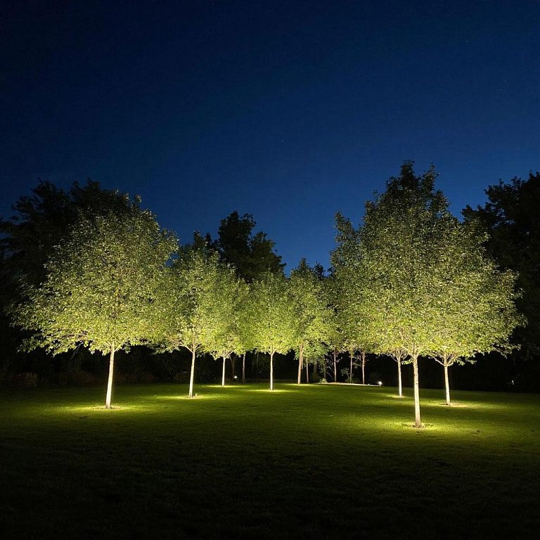 Выделите красоту ваших деревьев с помощью мягкой подсветки. Прожекторы, направленные вверх, создадут волшебный эффект, подчеркивая текстуру коры и листвы. Это особенно эффектно смотрится в лунные ночи, когда свет создает романтическую атмосферу.